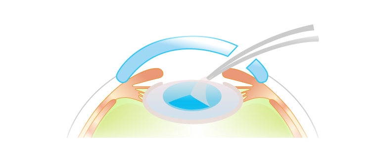 手術に踏み切る視力の基準はありませんが、日常生活や仕事に支障をきたしているか否かが手術を決断するポイントとなります。白内障の手術は多くの場合、目薬による麻酔のみで行います。手術の手順は次のとおりです。