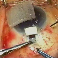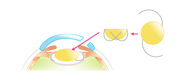 水晶体(レンズ)を取り切ると水晶体嚢が袋状に残る。この中に人工のレンズ(眼内レンズ)を挿入して手術は終了
