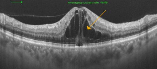 図18糖尿病黄斑浮腫の眼底と断層撮影(OCT)