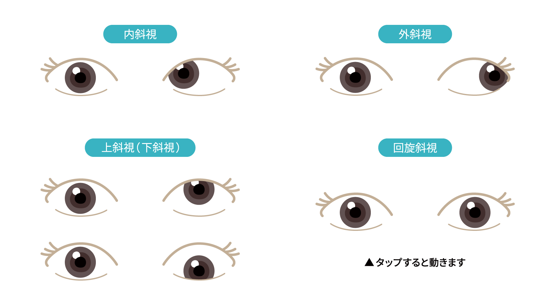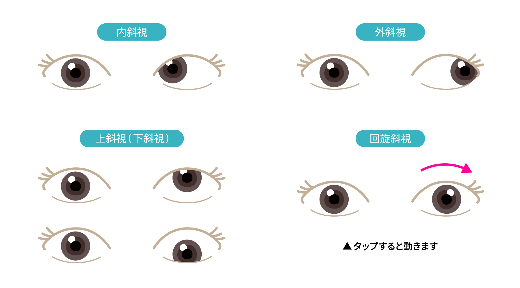 斜視の症状は主に次の3つに分けられます。